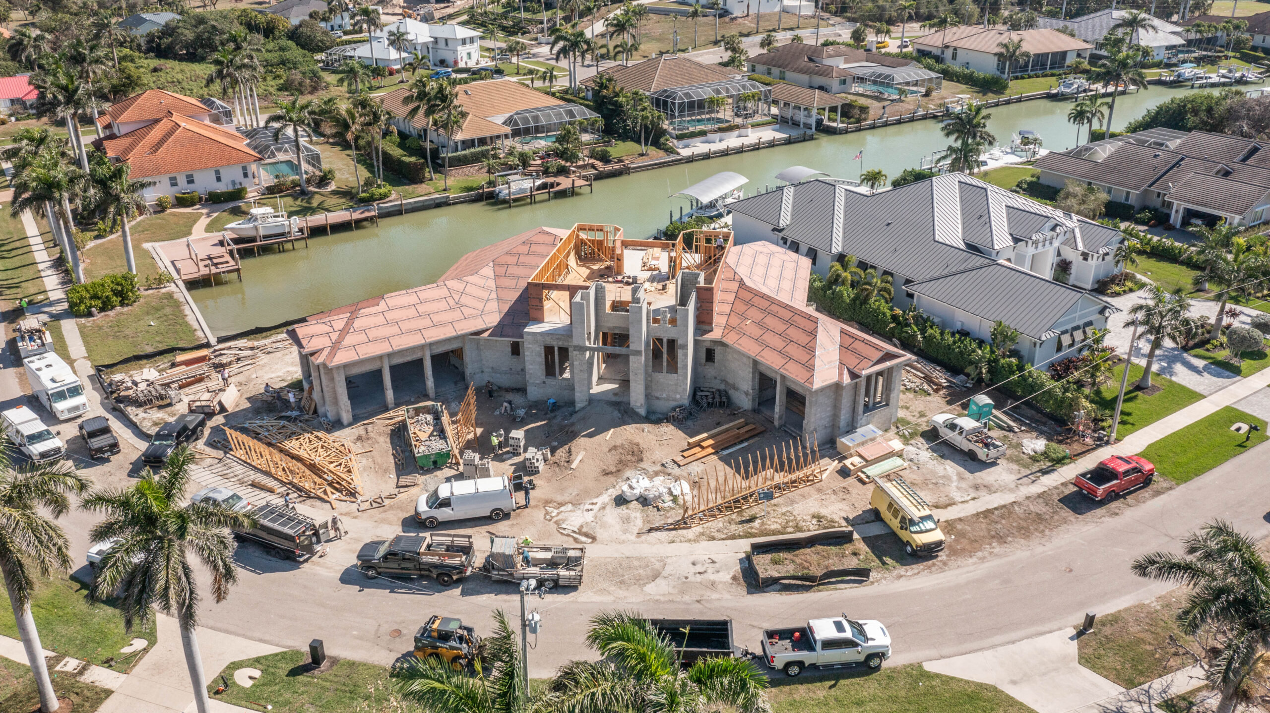 Additional features include a whole-house generator, 500-gallon propane tank, two oversized garages accommodating space for four cars, circular drive, impact windows and doors, and a 13-foot living area elevation. This home is a sanctuary of luxury, thoughtfully crafted with meticulous attention to detail. Indulge in the unparalleled elegance and sophistication of this magnificent Marco Island estate, where every amenity and feature has been designed to enhance your living experience. Estimated completion date August 2026.